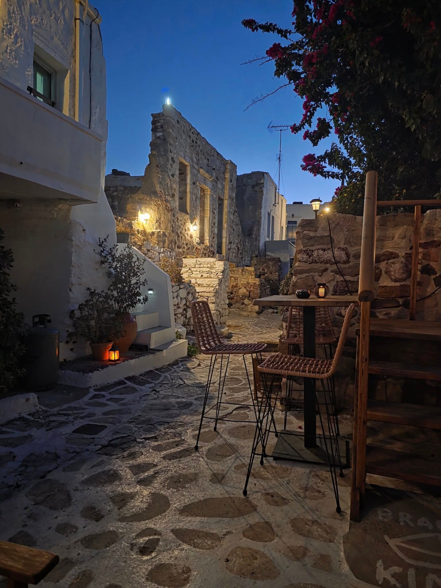 Följ gränderna som går längs utsidan av Kastro så kommer du ut i en del av Chora med många caféer, en del barer och en och annan restaurang. Där är folklivet mer påtagligt än i övriga delarna.