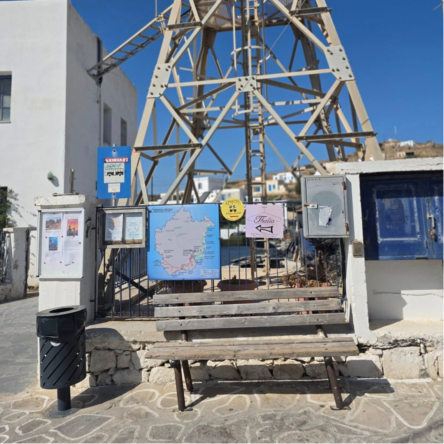 Mitt emot parkeringen ligger mycket trevliga Faros studios som du kan se från vägen. Vid parkeringen ligger också den ena av Choras två busshållplatser och ett av byns bagerier (öppnar för övrigt klockan 06.00 på morgonen).